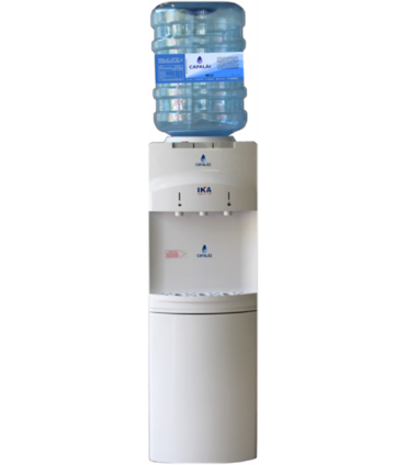 Dispensador eléctrico de agua purificada. Soporta botellones de 12 y 20 litros. Dispensa agua natural, caliente y fría, contiene receptáculo para agua perdida, seguro para niños. Posee luz indicadora de temperatura.